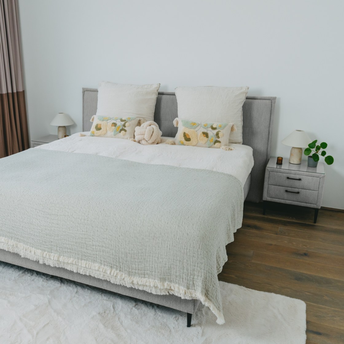 Im gleichen Stoff wie Dein Bett. Kann direkt mitbestellt werden.
